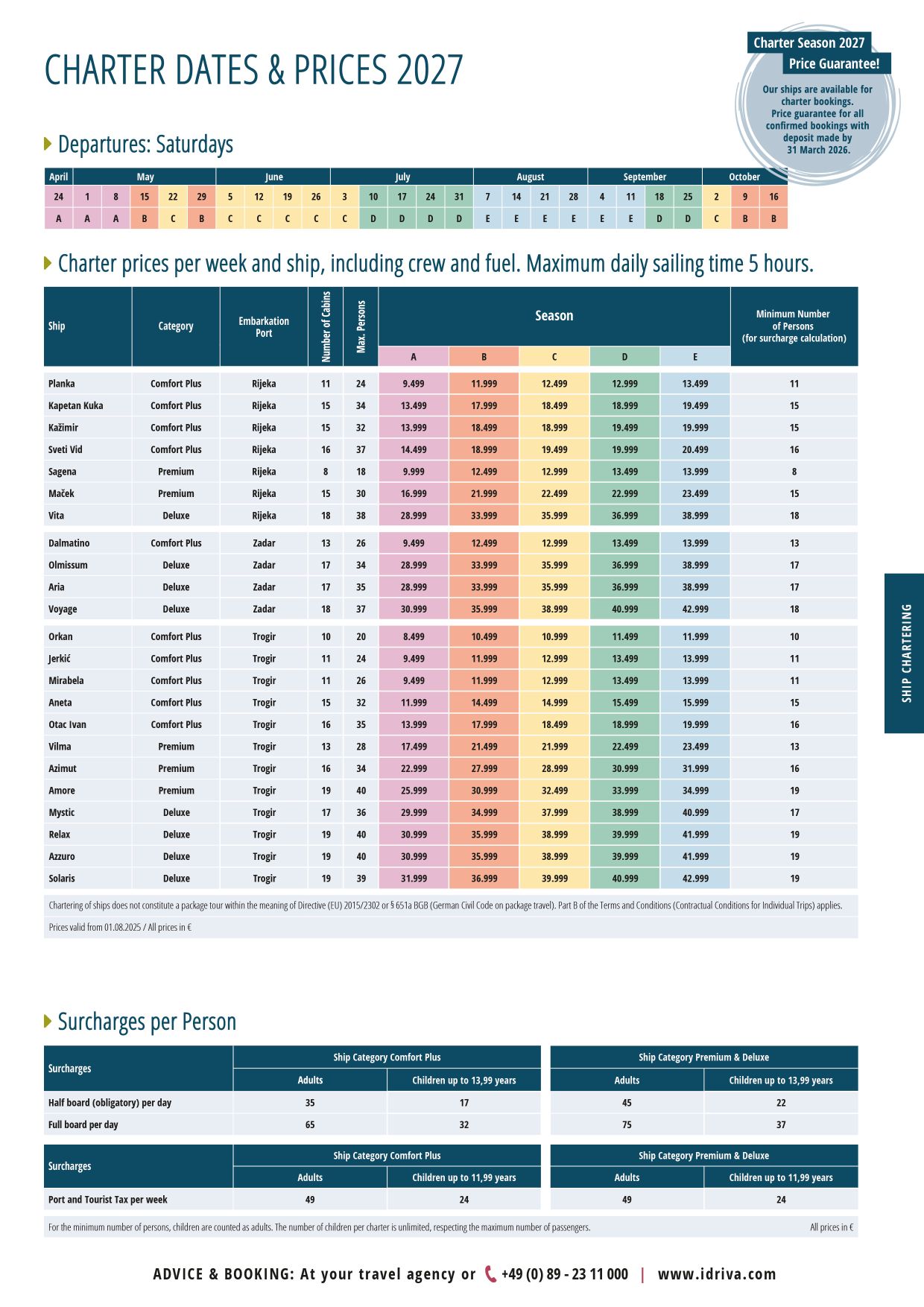 The fuel surcharge is to be paid per person, according to the minimum number of charter participants.