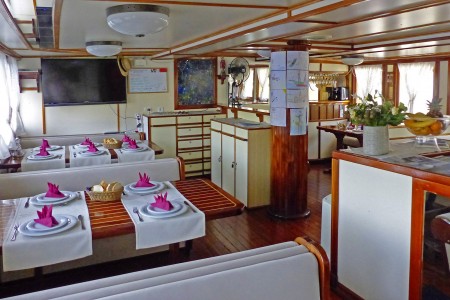 General data: Length 36 m, built in 1989, renovated in 2016. 34 beds in 14 cabins with shower/toilet and individually controllable air conditioning.