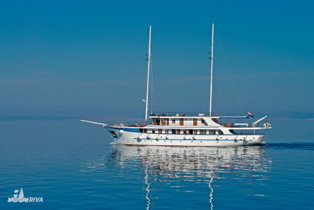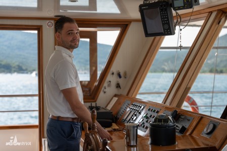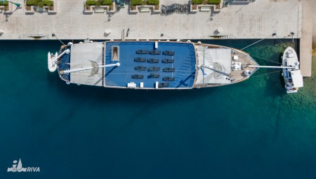 Captain Jure Tomaš and his MS Planka have been an integral part of our fleet since 1998. Since his son Marin has also been a captain for years now, Jure and Marin decided to build a new ship in the summer of 2014. The result was impressive, because in June 2016 the MS Aria, a majestic motorized sailing ship, went on its maiden voyage – the height from the waterline to the mast top is 32 m. A 675 hp engine gives the Aria a top speed of 12 knots, while the normal cruising speed is a comfortable 8 to 9 knots – after all, you should be able to enjoy the Adriatic Sea and its islands in peace. After three years, Jure has replaced his son Marin at the helm of the Aria, while Marin took care of the family's next ship newbuilding. By the way, the name "Aria" does not come from the aria in the opera or from the Italian word for air, but stands for "weather" in Dalmatian dialect.