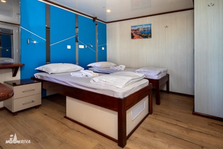 Lower deck: 2 triple cabins with separate beds and 3rd