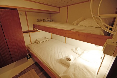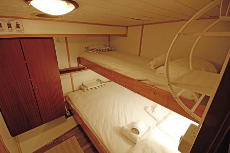 Lower deck: 4 triple cabins with queen-size bed and 3rd bed above.