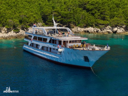 43 years ago, in 1978, young Arsen and his father Tomislav started to show tourists the beauties of the Dalmatian island world with their small wooden ship MS Orkan. While Tomislav retired only a few years ago, Arsen and his three sons Karlo, Paško and Roko – all have been holding the captain’s licence for a long time – steer the family's three ships. After the MY Mystic was launched in July 2015, we were able to welcome the MY Relax to our fleet in August 2018. The MY Relax has 19 comfortable cabins, a spacious saloon with bar and seating area on the upper deck, cosy, covered seating groups behind the saloon and a huge sun deck at the top. The Relax, however, was not to be the last newbuilding of the Ercegović family, because already in June 2019 she received an identical sister ship – the "MY Azzurro". While Karlo is at the helm of the Relax and Paško at the helm of the Azzurro, Arsen and Roko will remain faithful to their Mystic.
