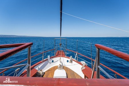 The port of embarkation for passengers depends on flight times. If you book your flight and transfer through I.D. Riva Tours and arrive at Split Airport by 1 p.m., embarkation in Trogir is guaranteed; if you arrive later, embarkation will take place at the first port of call.