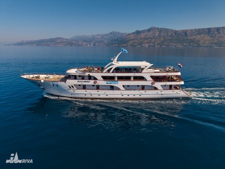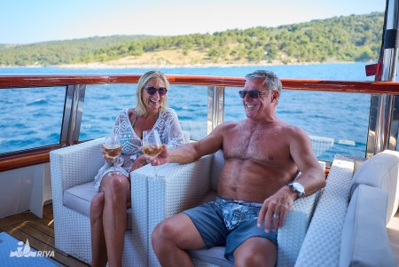 44 years ago, in 1978, young Arsen and his father Tomislav began showing holidaymakers the beauties of the Dalmatian islands on their small wooden ship Orkan. While Tomislav retired only a few years ago, Arsen and his three sons Karlo, Paško and Roko – all of whom have long since obtained their captain's licence – steer the family's three ships. After the launch of MY Mystic in July 2015, we welcomed MY Relax to our fleet in August 2018. However, the Relax was not to be the last new ship built by the Ercegović family, as it received a sister ship of the same design – the "MY Azzurro" – in June 2019. Like the MY Relax, the MY Azzurro also has 19 comfortable cabins, a spacious salon with bar and seating area on the upper deck, cosy, covered seating groups in the lounge area behind the salon and a huge sun deck at the top. While Karlo is at the helm of Relax and Paško at the helm of Azzurro, Arsen and Roko will remain loyal to their Mystic.