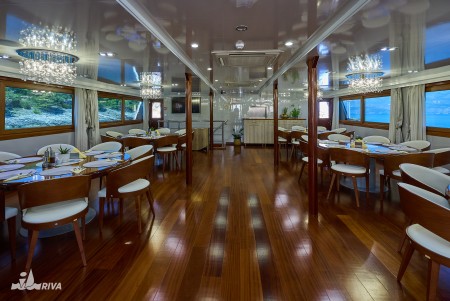 General data: Length 46 m, built in 2019. 40 beds in 19 cabins with shower/toilet, hair dryer, safe and individually controllable air conditioning.