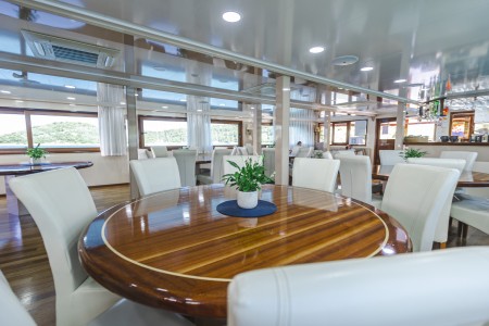 General data: Length 42 m, built in 2015. 36 beds in 17 cabins with shower/toilet, safe and individually controllable air conditioning.