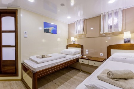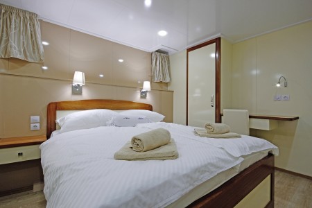 Main deck: 7 twin cabins with separate beds, 2 double cabins with queen-size bed.