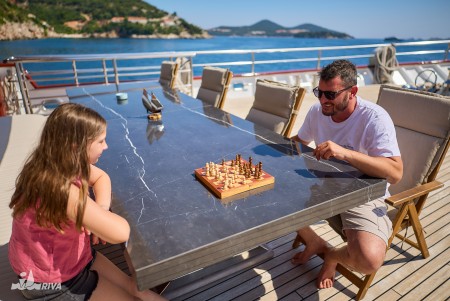 43 years ago, in 1978, young Arsen and his father Tomislav started to show tourists the beauties of the Dalmatian island world with their small wooden ship MS Orkan. While Tomislav retired only a few years ago, Arsen and his three sons Karlo, Paško and Roko – all have been holding the captain’s licence for a long time – steer the family's three ships. After the MY Mystic was launched in July 2015, we were able to welcome the MY Relax to our fleet in August 2018. The MY Relax has 19 comfortable cabins, a spacious saloon with bar and seating area on the upper deck, cosy, covered seating groups behind the saloon and a huge sun deck at the top. The Relax, however, was not to be the last newbuilding of the Ercegović family, because already in June 2019 she received an identical sister ship – the "MY Azzurro". While Karlo is at the helm of the Relax and Paško at the helm of the Azzurro, Arsen and Roko will remain faithful to their Mystic.