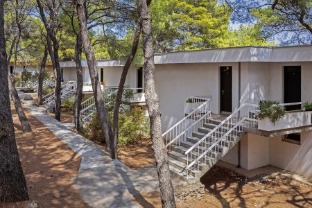 The vacation complex, consisting of 24 two-storey pavilions, is quietly situated on a pine forest hill and has a total of 333 rooms and apartments.