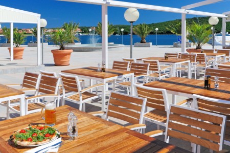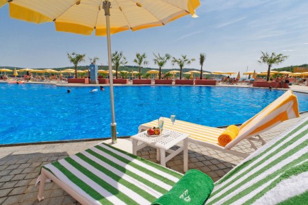 Facilities: Elegant lobby with reception and seating areas, restaurant/pizzeria with large terrace, café bar with its own patisserie. Freshwater swimming pool with separate children's area, large sun terrace, sun loungers and parasols (free of charge, limited number), pool bar, children's playground. Parking lot and garage. Internet corner available in the reception area (for a fee), WiFi internet available (free of charge).