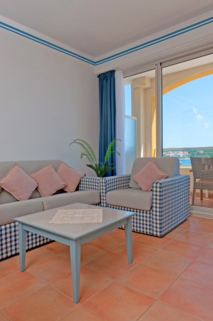 Apartment type F for 4-6 persons: approx. 65 m², one bedroom with double bed, one bedroom with two single beds, living room/bedroom with double sofa bed, kitchenette, dining area, air conditioning, satellite TV, safe, WiFi internet (free of charge), two showers/WC (massage shower), balcony with sea view.