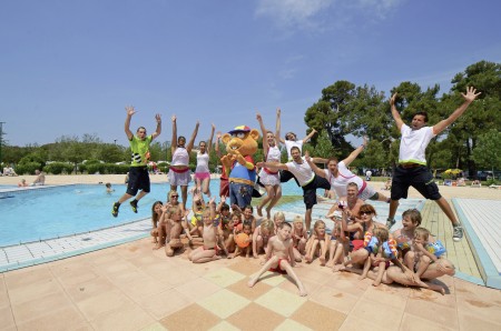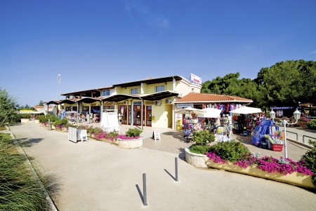 Facilities: Central reception, restaurants, bars, snack bars, sports bar near the campsite (music until midnight in high season), ice cream parlor, magazine and souvenir store, small shopping center with various stores, supermarket and pizzeria. Amusement arcade, hairdressing salon, ambulance, massage, laundry, children's playground, adrenaline park, three freshwater swimming pools with sun loungers (included in the price, limited number). The resort also has around 15 boat moorings (free of charge, cannot be reserved). Entertainment program for young and old. WiFi internet available (free of charge).