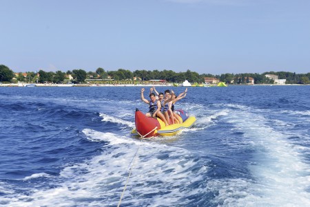 Sport: Beach volleyball, soccer, badminton, archery, adrenaline park, trampoline park, minigolf, aerobics, aquarobics, jet skiing, banana boats, pedal boats, windsurfing, bike hire.