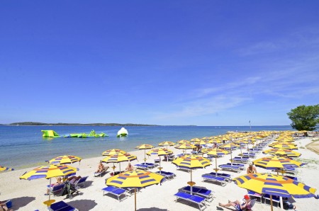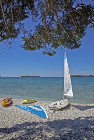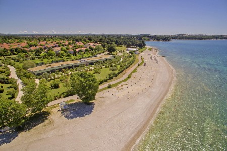 The extensive vacation complex consists of a campsite, a small hotel, apartments and mobile homes. It is located around 5 km from Pula, directly by the sea, with a view of the Brijuni Islands National Park.