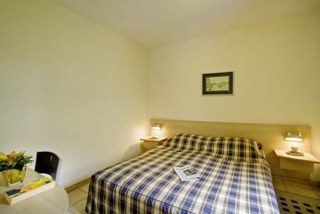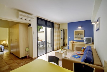 Apartment type A for 2-4 persons: approx. 38 m², with air conditioning, satellite TV, telephone and safe, one double room, living room with double sofa bed, kitchen with electric stove, microwave, filter coffee machine and dishwasher, dining area, shower/WC, terrace (approx. 15 m²). Baby crib available on request (for a fee, €5 per day)