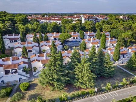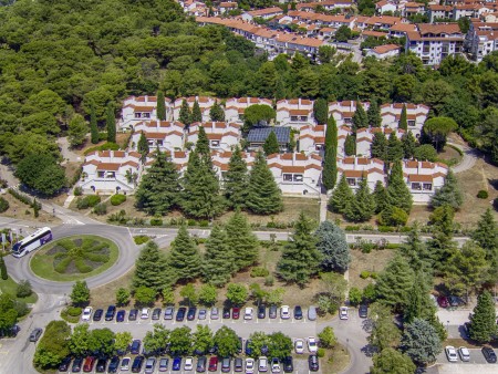 The terraced houses of the apartment complex, built in typical Mediterranean style with 128 comfortably furnished accommodation units, are located on a flat slope opposite the Valamar Diamant Hotel.