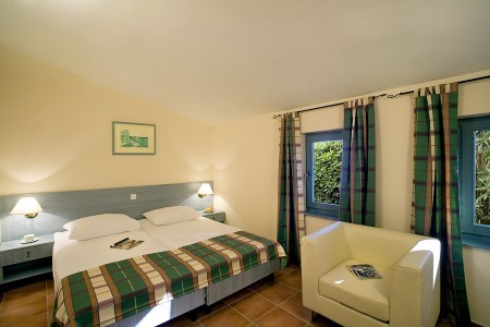 Villa for 4-6 people: in two-storey terraced houses, approx. 45 m² (terrace or balcony approx. 10 m²), 2 double rooms, living room/bedroom with sofa bed, air conditioning, LCD TV, WiFi internet (free), telephone, safe, kitchenette with microwave, dishwasher, fridge and coffee machine, 2 bathrooms. Maximum 5 people possible when booking full board "all inclusive".