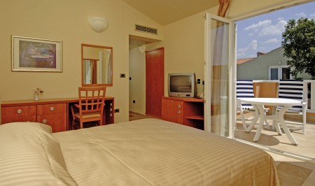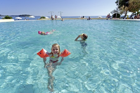 Facilities: Restaurant, pizzeria, pastry shop, fast food, fruit and vegetable stand, fresh corner with bakery, aperitif bar, pool bar, souvenir and magazine store, supermarket, TV room with satellite TV, massage, laundry, ATM, children's playground, three seawater swimming pools (one of which is a children's pool), sun loungers and parasols (free of charge, limited number). In season, entertainment evenings, dance music and children's program on the terraces, by the pool or on the beach, daily entertainment program for children and adults, teen club (11-18 years), mini club (4-12 years) in July and August from 10 am to 8 pm, reduced offer during the rest of the year. Free unguarded parking lot in the resort. WiFi internet available in the bakery area and by the pool (free of charge). Cab boat to Rovinj in July and August (for a fee).