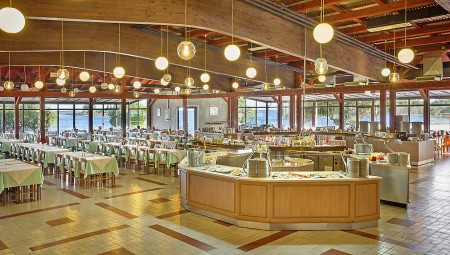 Facilities: Several restaurants, snack bars, bars, pizzeria, café terrace, supermarket, magazine store, ATM, children's playground, game room, spacious freshwater swimming pool complex with water slide and separate children's pool, sun loungers and parasols (free of charge, limited number), sun terraces and pool bar as well as restaurant and dance terrace (live music). Daytime and evening entertainment for adults and children, mini club (approx. beginning of June - end of August). Unguarded free parking. Limited WiFi internet available throughout the resort.