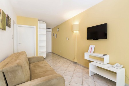 Classic apartment for 3-5 people: approx. 42 m² on the second floor, one bedroom, one single room, living room/bedroom with sofa bed, air conditioning, satellite TV, telephone, WiFi internet (free of charge), safe, kitchenette with toaster, microwave and kettle, dining area, shower/WC, balcony.
