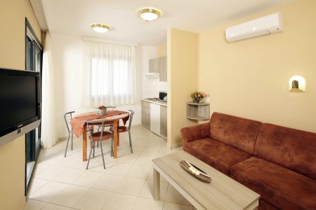 Classic apartment for 2-4 people: approx. 42 m² on the first or second floor, one bedroom with double bed or two single beds, living room/bedroom with sofa bed, air conditioning, satellite TV, telephone, WiFi internet (free of charge), safe, kitchenette with toaster, microwave and kettle, dining area, bathroom/WC, balcony.
