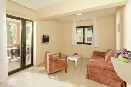 Superior apartment for 4-6 people: approx. 51 m² on the first floor or second floor, one bedroom with double bed, one bedroom with two single beds, living room/bedroom with sofa bed, air conditioning, satellite TV, telephone, WiFi internet (free of charge), safe, kitchenette with toaster, microwave and kettle, dining area, bath or shower/WC, separate WC, terrace or balcony.