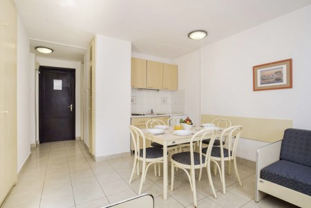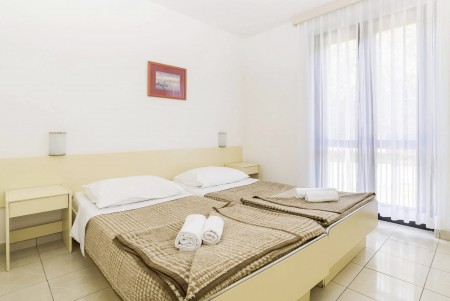 Apartment for 2-4 people: approx. 45 m², one double room, living room/bedroom with sleeping area, kitchenette and dining area, satellite TV, telephone, WiFi internet (free of charge), bathroom/WC and balcony or terrace.