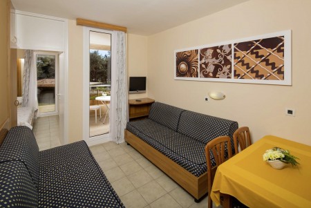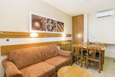 Superior apartment for 2-4 people: approx. 28 m², on the first or second floor, one bedroom, living room/bedroom with two sofa beds, air conditioning, satellite TV, telephone, WiFi internet (free of charge), kitchenette with microwave, dining area, shower/WC, balcony.