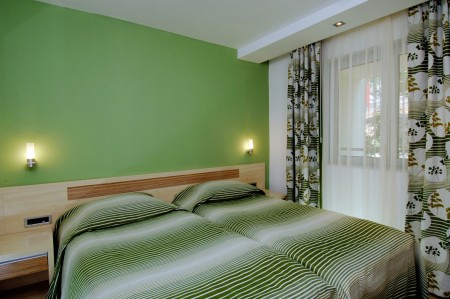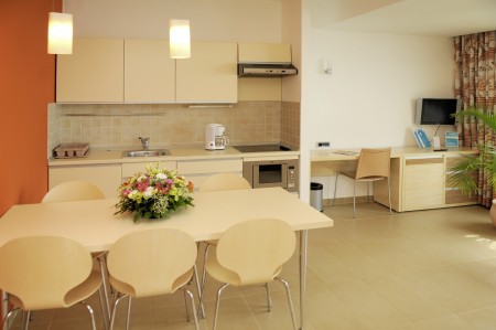 Apartment for 2-4 persons: approx. 45-50 m², bedroom with two single beds (100x200 cm each), living room with sofa bed (160x190-200 cm), air conditioning, satellite TV, telephone, WiFi internet (free of charge), safe, kitchenette with microwave and coffee machine, dining area, shower/WC, balcony.