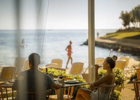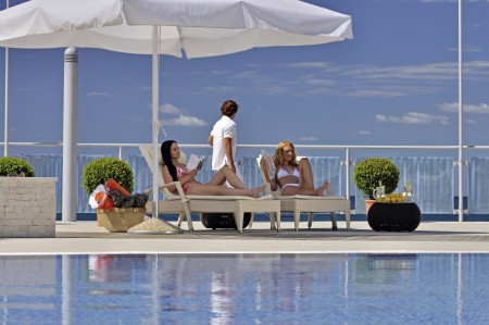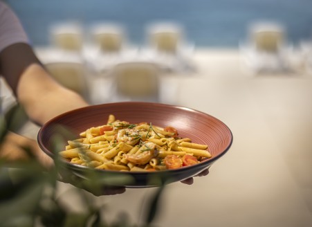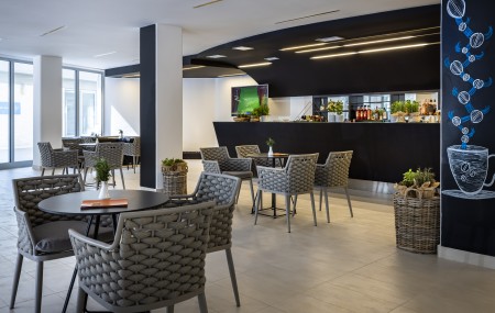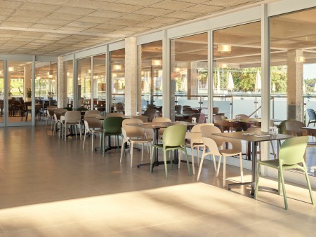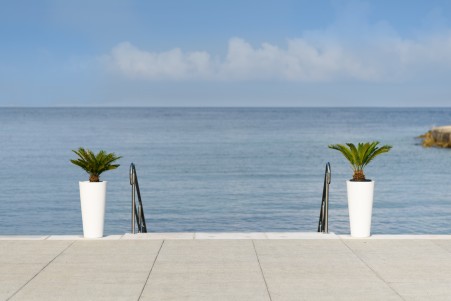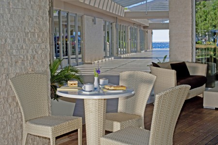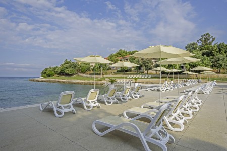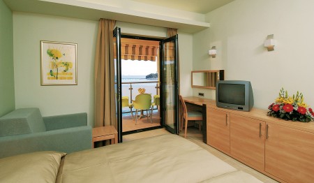 Beach: The long rocky beach with concrete sunbathing areas and a small pebble bay is around 50 to 150 m away, depending on the accommodation. Sunshades and sun loungers for a fee. There are also showers, changing rooms and a sun terrace with access to the sea.