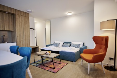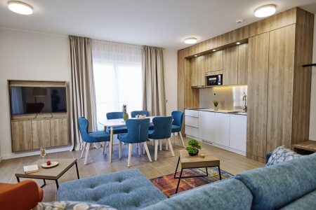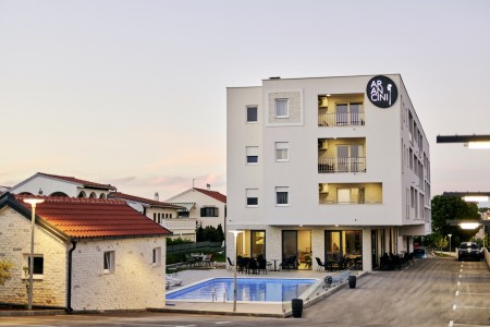 Facilities: The Arancini Residence has a reception, a restaurant and a bar, an outdoor pool (open seasonally) with parasols and sun loungers and a wellness area with sauna and fitness center. The 30 non-smoking apartments are located in a multi-storey building and are all furnished in a modern style. WiFi internet available in the public areas (free of charge). Parking available at the hotel (for 15.06.-15.09. at 10 € per day, the rest of the time free of charge).