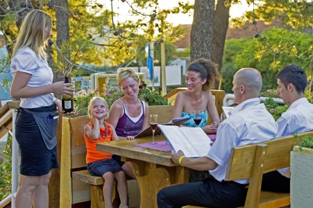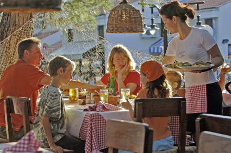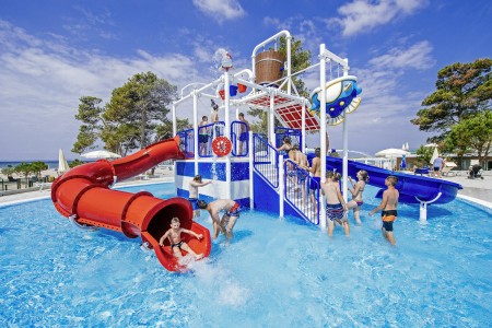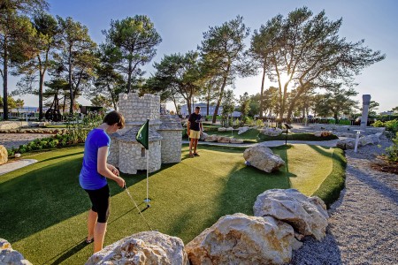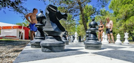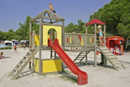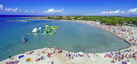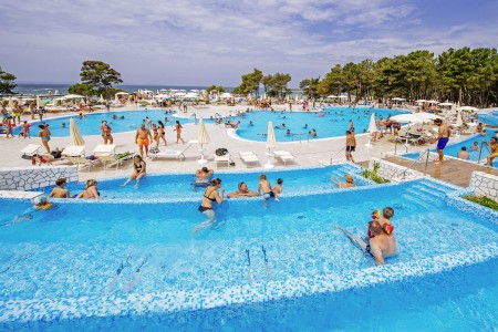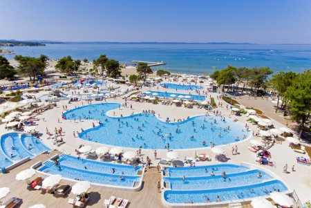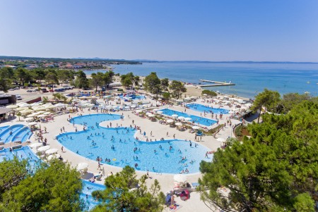 The most popular vacation resort in northern Dalmatia is located in a wide bay protected from wind and waves. The campsite with mobile homes and the terraced houses built in typical Dalmatian style with a total of 596 apartments are located separately in a 100-hectare pine forest.