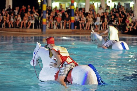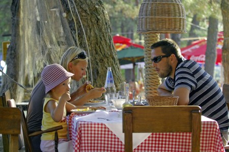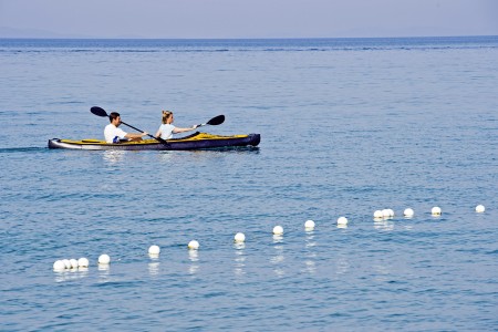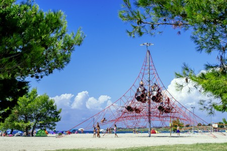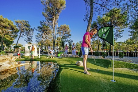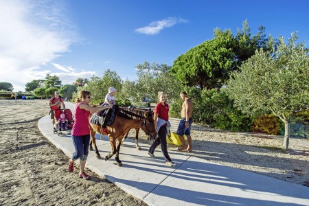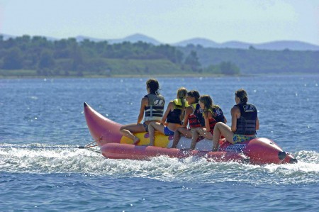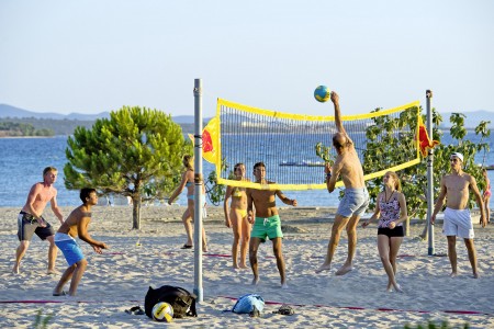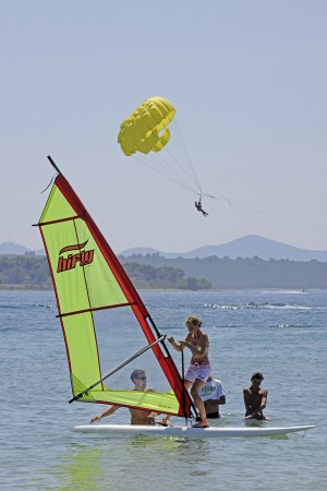 Sport: 6 clay tennis courts, tennis school, riding center with riding school, pony rides, small artificial turf soccer pitch, beach volleyball, table tennis, boccia, mini golf, adventure golf, water skiing, parasailing, banana boats, fun tubes, jet skis, diving school, motor and pedal boats, bike hire, jogging trail, climbing garden, aerobics, swimming school for children, handball, outdoor fitness center.