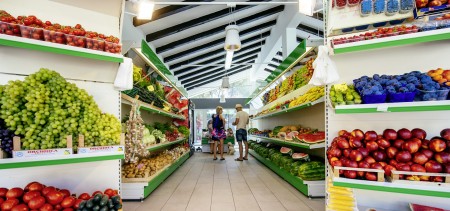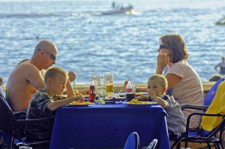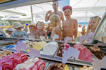 Facilities: On the "Kalelarga" - the pedestrian zone of the resort - you will find restaurants with terraces, pizzeria, ice cream parlor, supermarket, bakery, tavern, aperitif bar, café bar, boutiques, hairdresser, ambulance, various stores with magazines and souvenirs. On the beach there is an entertainment center with dance music and animation. Entertainment in the mini club (3-12 years) and teen club (13-15 years), as well as daytime and evening entertainment for adults. Amphitheater, snack bar, cocktail bar, café. New pool complex of approx. 2,500 m² with several pools, including a children's pool, two water slides, splash park, restaurant and pool bar, sun lounger and parasol hire. Children's playground. Shaded parking spaces outside or on the edge of the complex (free of charge). Marina for smaller pleasure craft, moorings for a fee. WiFi internet available (free of charge).