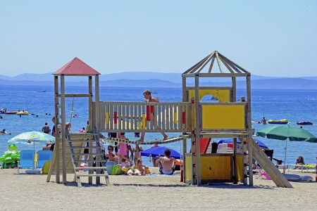 Beach: The 2000 m long sand and pebble beach - mainly with a sandy seabed and very gently sloping, making it ideal for small children - is around 50 to 300 m away, depending on the accommodation. Sun loungers and parasols for hire, snack bar and water slide.