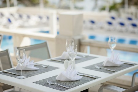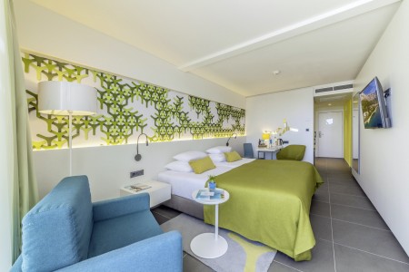 Facilities: Buffet restaurant, à la carte restaurant, café with terrace, two bars, elevator, TV room, two freshwater swimming pools and swim-up pool (only for guests in the deluxe rooms), two sun terraces with sun loungers and parasols (free of charge, limited number), fitness room. Daily animation and entertainment program for children and adults except Saturdays, mini club, live music several times a week. WiFi internet available throughout the hotel (free of charge). Concierge service and room service are offered. Paid parking (10 € per day).