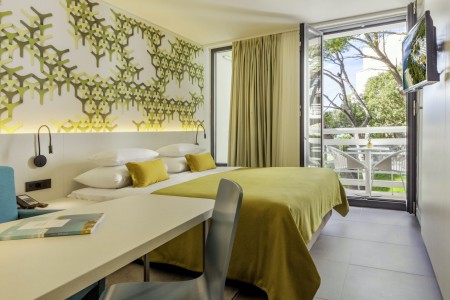 Facilities: Buffet restaurant, à la carte restaurant, café with terrace, two bars, elevator, TV room, two freshwater swimming pools and swim-up pool (only for guests in the deluxe rooms), two sun terraces with sun loungers and parasols (free of charge, limited number), fitness room. Daily animation and entertainment program for children and adults except Saturdays, mini club, live music several times a week. WiFi internet available throughout the hotel (free of charge). Concierge service and room service are offered. Paid parking (10 € per day).