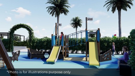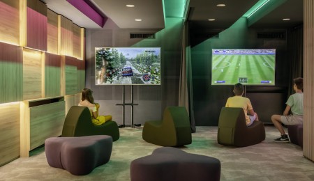 Facilities: Modern lobby and reception area, main restaurant, two à la carte restaurants – ‘Eat Like a Local’ on the beach promenade and ‘The Above – Rooftop Restaurant & Bar’ on the hotel roof, lobby and rooftop bars, and several pool bars. Swimming pool complex with two freshwater swimming pools, sun terraces, separate freshwater children's pool, sun loungers and parasols (free of charge, limited number), plus an indoor pool. Modern children's playroom and playground. Varied entertainment programme for the whole family, depending on the season. Charging station for electric cars, hairdresser, concierge service. Paid parking in front of the hotel (€10 per day), hotel garage (€20 per day). WiFi internet available throughout the hotel (free of charge).