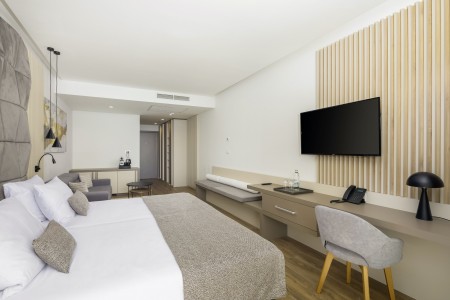 Double room Luxury: approx. 34-42 m², one double bed, additional sleeping accommodation for one adult or up to 2 children up to 17.99 years, balcony with sea view.