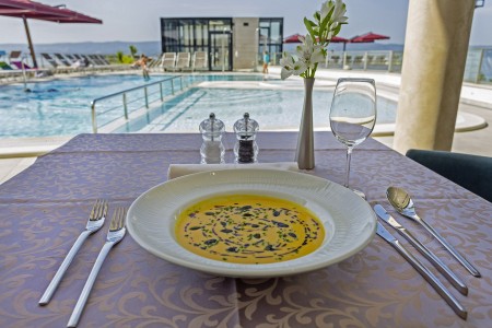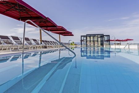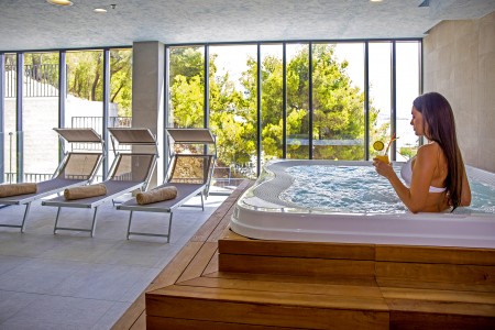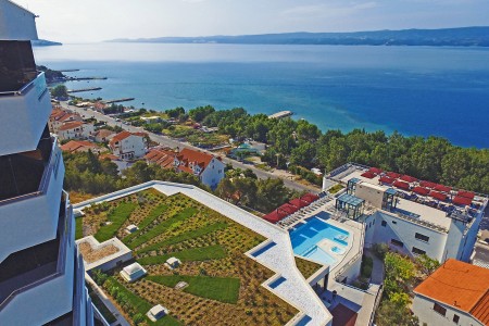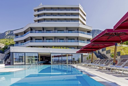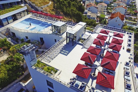 This elegant hotel is located around 3 km west of the historic "pirate town" of Omiš. With stylish, spacious rooms, an indoor pool and extensive spa area, this modern hotel offers the best conditions for a successful vacation. The highlight is the roof terrace, which offers a swimming pool and whirlpool as well as an impressive view of the enchanting Adriatic Sea and the island of Brač opposite.