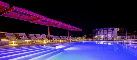 Facilities: Buffet restaurant, à la carte restaurant, pool bar, freshwater indoor pool, roof terrace with freshwater swimming pool with children's pool, sun terrace with parasols and sun loungers (included, limited number), elevator, internet corner, parking (approx. 30 m away, limited number, included) and garage (€ 12 per day, advance reservation required). WiFi internet available throughout the hotel (free of charge).
