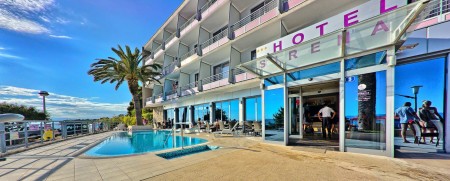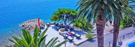 The hotel is located near the Biokovo Nature Park in the western part of the picturesque village of Podgora on the Makarska Riviera, 300 m from the town center and just a few meters from the beach.