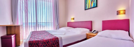 72 rooms: comfortable with double bed, air conditioning, satellite TV, telephone, WiFi internet (free of charge), minibar and hairdryer, shower/WC. Baby crib available on request (for a fee, € 10 per day).