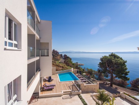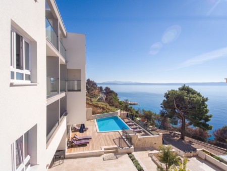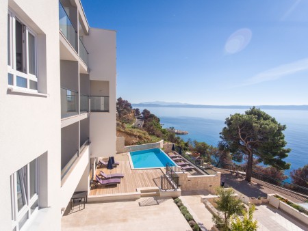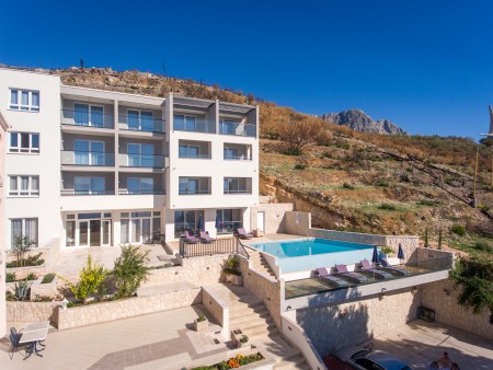 Villa Cascada is quietly located on the southern Makarska Riviera, just a few steps from the fine pebbly beach and in the immediate vicinity of the promenade. From here you can walk to the charming fishing port of Podgora with its cozy cafés, wine bars and small restaurants. Makarska can be reached via the promenade in approx. 6 km.