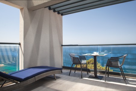 18 rooms: approx. 26-28 m², with air conditioning, satellite TV, mini fridge, coffee and tea maker, WiFi internet (free of charge), bathroom with shower/WC and balcony or terrace. Optionally bookable with sea view.