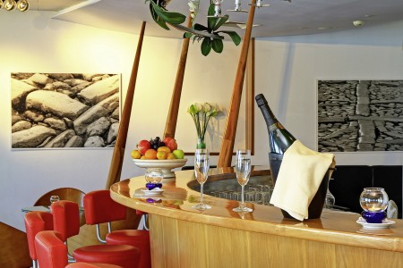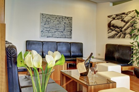 15 suites: approx. 44-50 m², modern and comfortably furnished, one double room, living room with sofa bed (extra bed for 4th person possible), satellite TV, air conditioning, telephone, WiFi internet (free of charge), minibar, safe, shower/WC and balcony facing the sea.