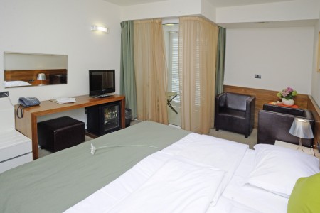 13 rooms: approx. 22 m², modern and comfortably furnished, with satellite TV, air conditioning, telephone, WiFi Internet (free of charge), minibar, safe, bathroom/WC and balcony facing the sea.