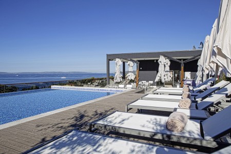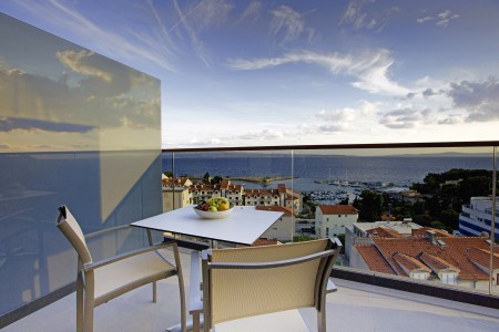 Built for the 2017 season, this modern hotel is located in Split. The most important sights such as Diocletian's Palace (UNESCO World Heritage Site) are within walking distance. The elegant hotel is tastefully furnished and stands for vacations at a high level. In addition to comfortable rooms, an indoor pool and wellness center, a charming roof terrace with swimming pool awaits you. From here you can enjoy a breathtaking view over the city and the Adriatic Sea with its offshore islands.