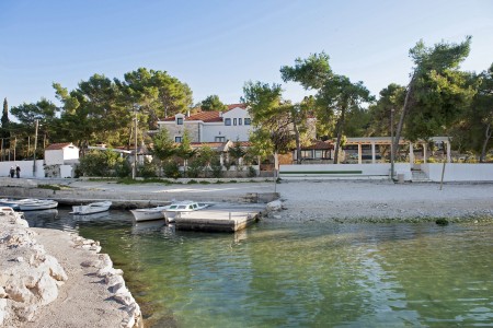 Surrounded by shady pine trees, the Hotel Sveti Križ (Holy Cross) is located opposite the pilgrimage church of the same name on the north side of the island of Čiovo, which is connected to the charming town of Trogir by a bridge. Trogir has one of the most picturesque old towns in Dalmatia and is under UNESCO protection.