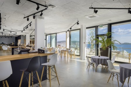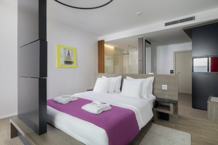 Facilities: Reception, à-la-carte restaurant "Black Pepper" with sea view and dishes with seasonal and regionally produced ingredients, café "Ola Bar", rooftop bar "Code Zero" (open seasonally from approx. 01.06.), rooftop infinity pool (approx. 10x6.5 m, heatable, open approx. 01.06.-01.10.) with parasols and sun loungers (subject to availability), elevator, spa and wellness area with indoor pool, conference room for approx. 80 people. WiFi internet available in the hotel (free of charge). Parking in the duplex hotel garage and in the parking lot for a fee (€ 8 per day) and charging station for electric cars (for a fee).